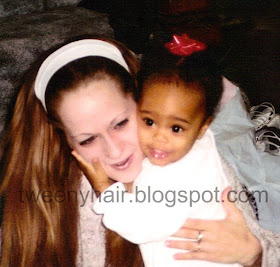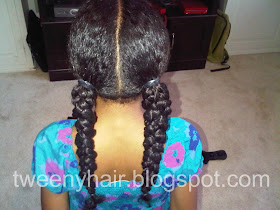After finishing that part, the rest of the older girl's hair was put into twists. She is growing out her pretty damaged hair, so I twisted her hair in order to give her curls a uniform look. She is only wearing the twists overnight so she can have a twist out for school in the morning. Sadly, I don't have a picture of the twist out, since I won't see her again for a week.