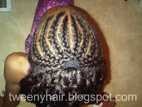 ReplyDeleteRevjenn, they're two strand twists. I do those more often than rope twists because we like the twist out better and almost all her styles with twists end up in twist outs. :)
