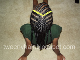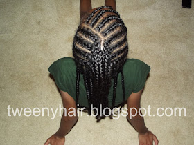 When I sat down to do Syd's hair this time, I had planned on cornrowing her hair into a very basic mohawk style. I didn't want to do anything too intricate because I know it will have to come down at the end of the week. Tune in next week to see why.