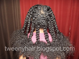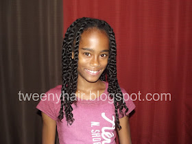 The roots were fuzzier than when I do her hair, and the twists became fuzzy all over after only a couple of days, but she will improve with time. Overall, she did a wonderful job for her first attempt at styling solo. Well....almost solo. :)